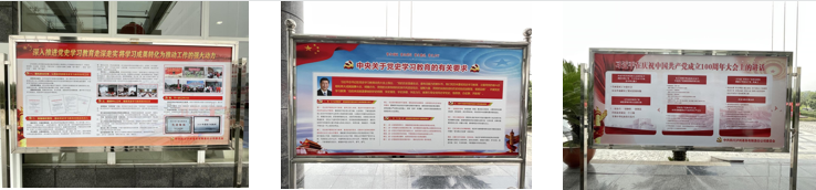? ? ? 多點位學習習近平總書記七一重要講話精神,突出習近平總書記在黨史學習教育動員大會上的講話內(nèi)容,懸掛宣傳橫幅12幅,陳設宣傳展板7塊,利用大廳大型電子顯示屏播放黨史學習教育內(nèi)容,引導黨員干部和群眾感悟思想偉力、強化理論武裝,增強政治自覺。